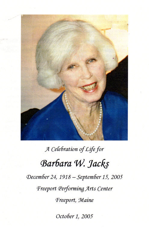A photograph of Freeport Community Players founder Barbara Jacks as it appeared on the cover of her Oct. 1, 2005, memorial service.