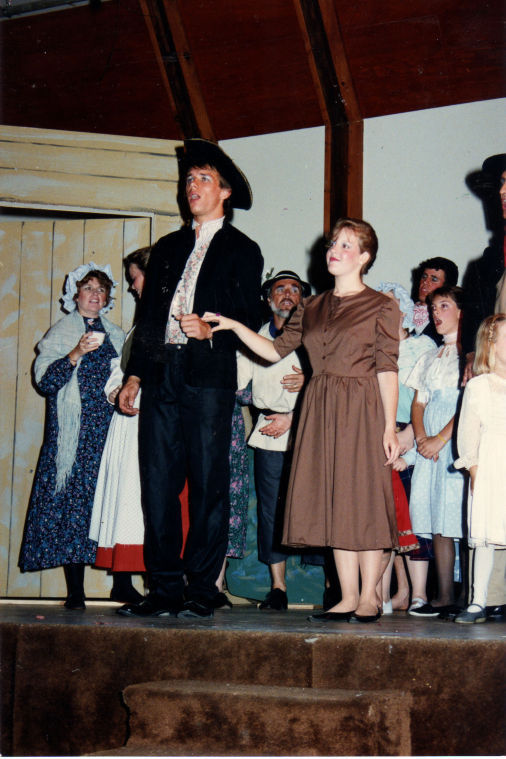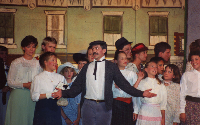 Among the cast of the 1992 musical, “The Music Man” were, from left, front, Jennifer Neal and Randy Roy; and Kim Libby, back left.