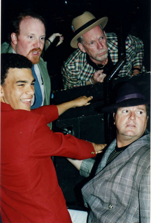 John York and Davis Webster, from left, front, and Ethan Sprague and Eric Worthley, as they appeared in “Guys and Dolls,” in 2000.