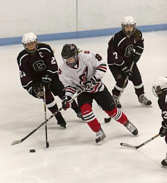 Dynamic Scarborough freshman Elizabeth Gross skates past a Greely defender.
