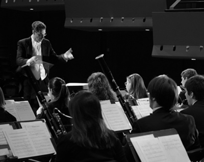 Dr. Andrew Boysen conducts the University of New Hampshire Wind Symphony, which will perform with the Westbrook High School Wind Ensemble on Jan. 30.