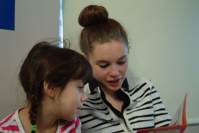 The program, which is now in its second year at the primary school, pairs high school students with elementary school students who are falling behind in their literacy skills. The high school students, equipped with lesson plans designed by Scholastic, do their best to teach the younger students how to understand and pronounce words.