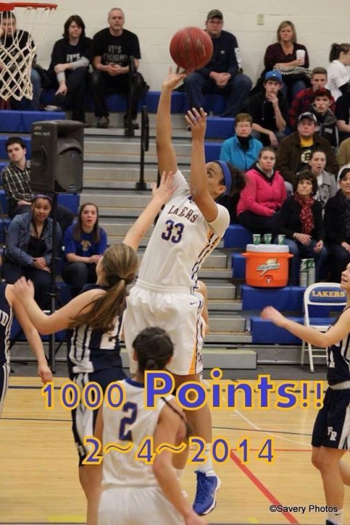 Tiana-Jo Carter of the Lake Region High School girls basketball team, scored her 1,000th point during a game against Poland Regional High School Tuesday night, Feb. 4.