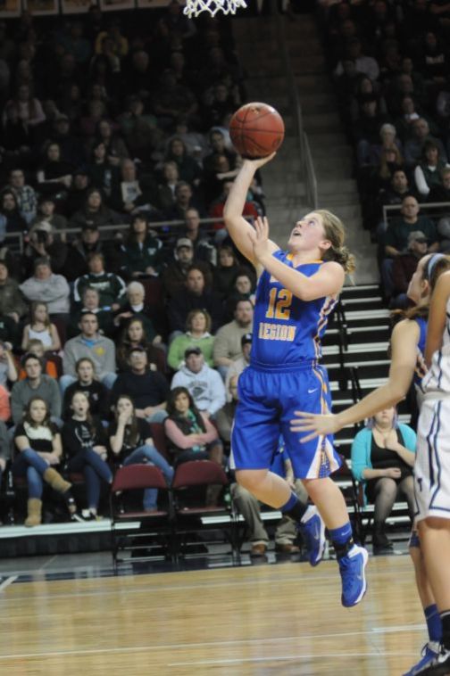 Sarah Hancock (12) makes a way for an easy two during the action last Friday night in Bangor.
