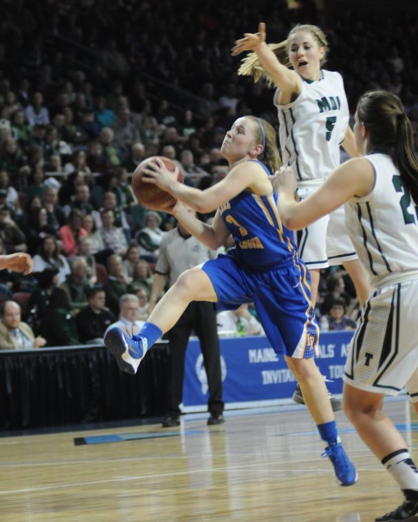 Tiana-Jo Carter posted 21 points at the Cross Insurance Center in Bangor Friday night, Feb. 28, grabbing huge rebounds and making key blocks underneath to lead the Lake Region girls over Mount Desert Island, 56-47, and earn them the Class B title.