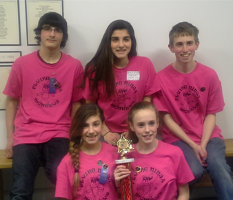 Team Terranova and Team Strickler hold their state trophies for Destination Imagination. The teams are raising money to attend the Global Finals competition in Knoxville, Tenn.