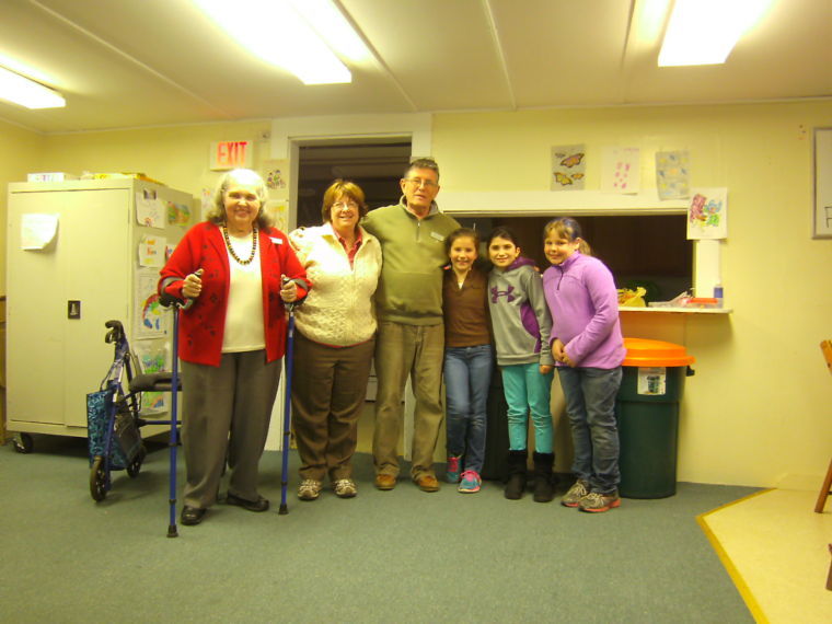 Elle Hall, foreground, and Leah Plummer get in touch with the animals on Girl Scout Troop 1963’s recent visit to the Maine State Society for the Protection of Animals in Windham. Fourth grade Songo Locks students Rebecca Caron, Brooke Toole, and Liz Smith, along with fourth-grade teacher Sharon Rogers, visit the Songo Garden Club at a recent meeting to thank the club for sponsoring a recent field trip taken by fourth-grade students to the Maine State House and Museum. Pictured also are Songo Garden Club’s Polly Glavine and Jack Dean.