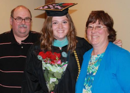 After earning a master’s degree from the University of North Carolina at Charlotte, Jennifer Stoudt celebrates with her parents, Will and Brenda Stoudt of Gorham.