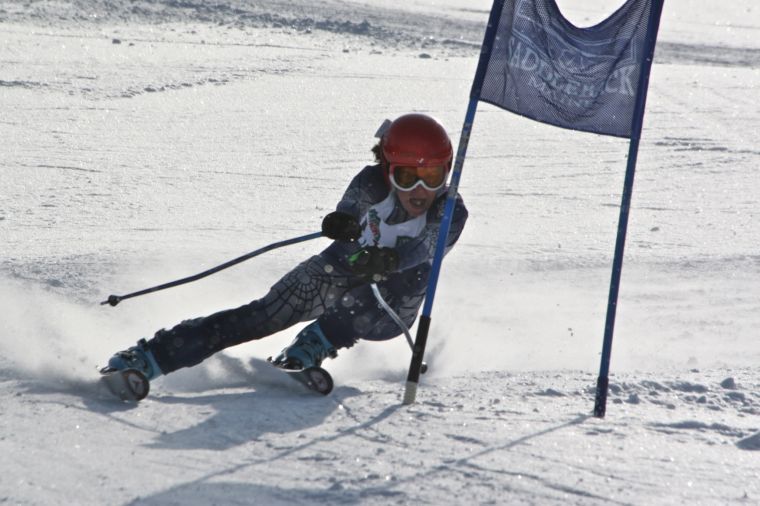 Elly Bengtsson powers past a giant slalom gate in a ski race. The graduating Freeport High School senior will attend Holderness School next year, then plans to be a Division I skier at the University of Vermont.