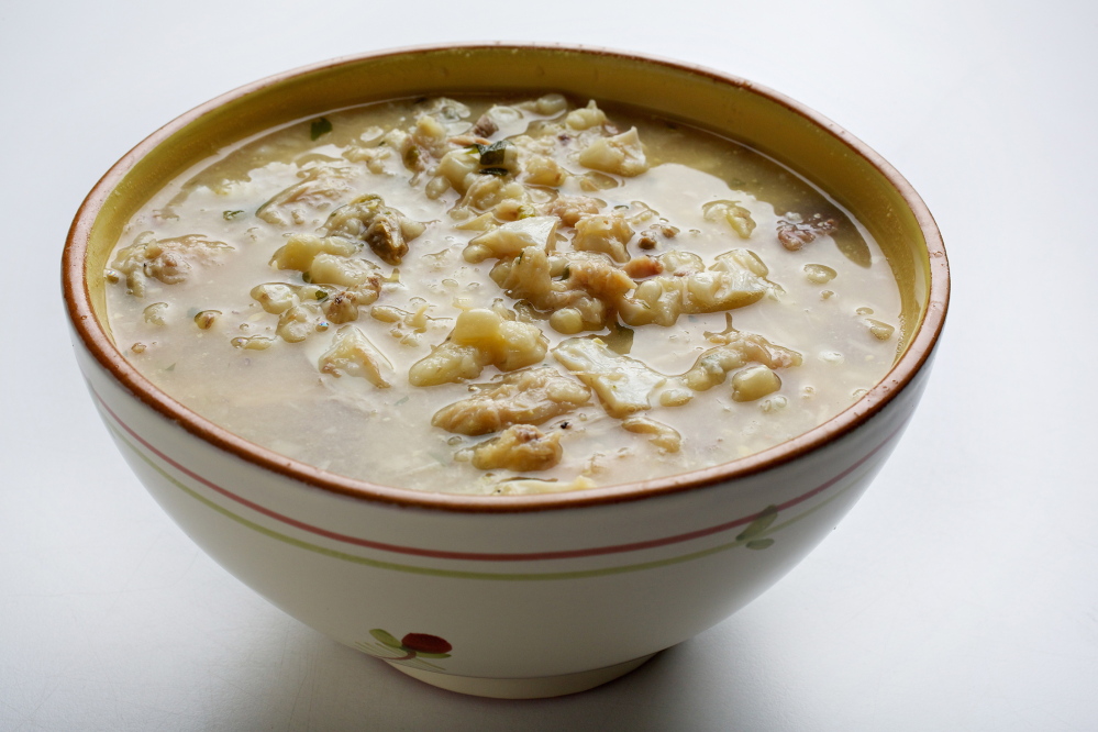 The small dumplings, or rivvels, that are added during cooking elevate the soup to comfort-food, main-course status.