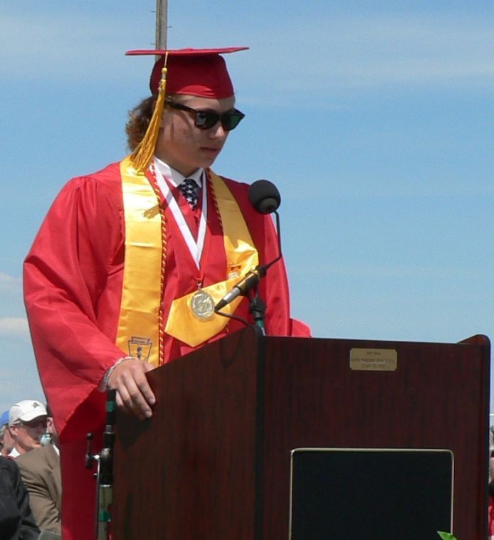 South Portland High School Valedictorian Emma Kane told her fellow graduates that the most important thing they could do in the future was to be a good person who cares about others, as well as the environment.