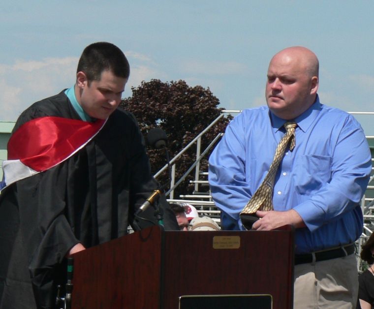 In presenting Rogers with his special diploma, South Portland High School Principal Ryan Caron said that while Rogers was voted as having the most school spirit when he was in high school 30 years ago, he did not experience academic success.