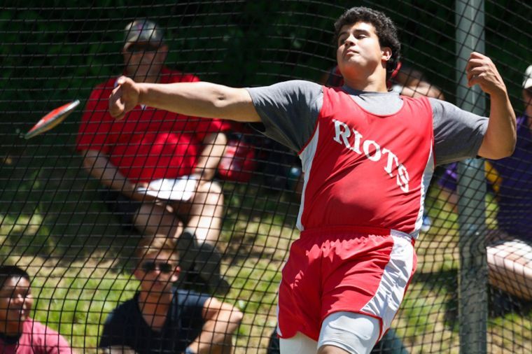 Scarborough’s Mike Pino unwinds into his discus throw; Pino placed fifth in the event.