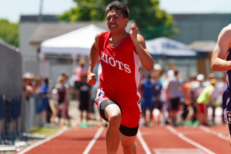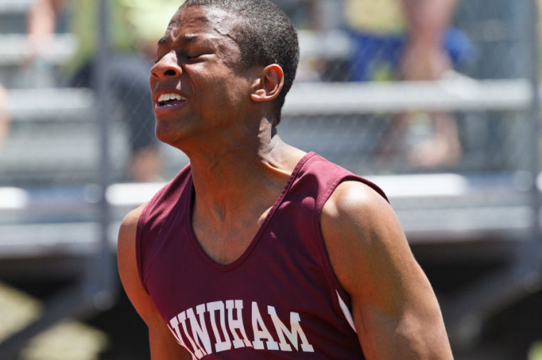 Windham’s Eric Webb pushes through the 100m Finals.