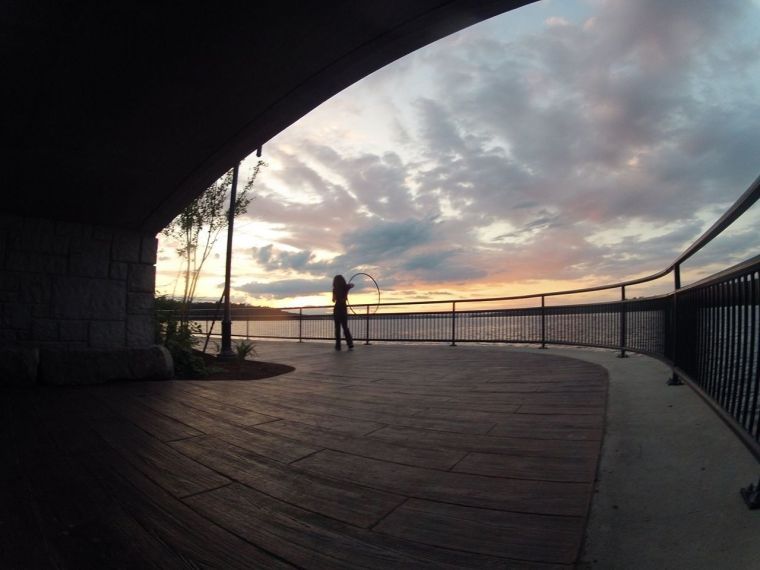 A gorgeous view of a Long Lake sunset from the walkway under the new Naples Causeway bridge features Ashley Stieben and her hula-hoop.