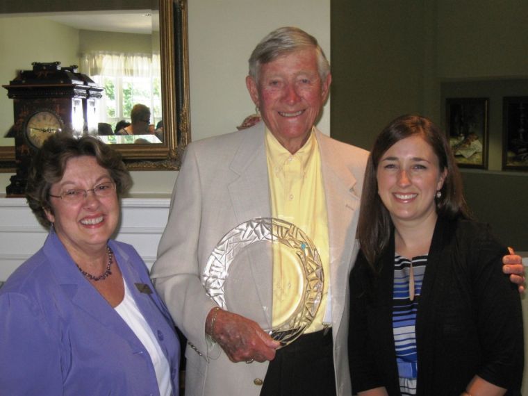 From left are Scarborough Terrace Assisted Living’s executive director Terry Huntley, Bud Hanson and Scarborough Community Services’ seniors program coordinator Hallie Hodge at the recent Senior Service Award reception.