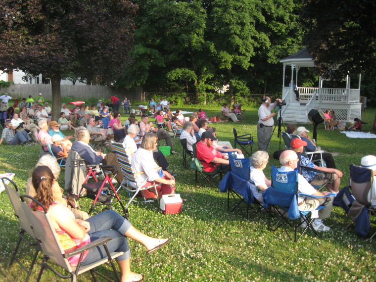 Concert goers gather on the lawn at Gorham Municipal Center gazebo on July 1 to hear the Casco Bay Concert Band kick off the town’s free concert season. The summer series on Tuesdays continues through Aug. 12.