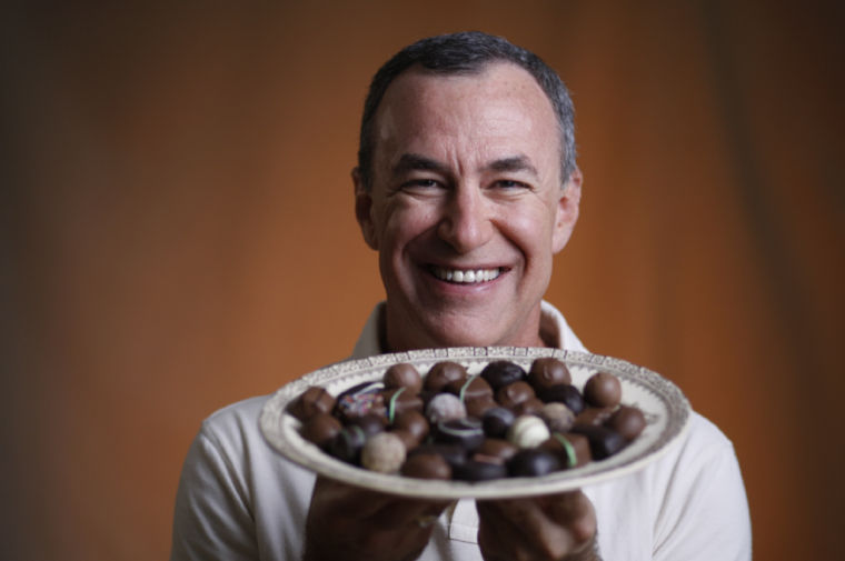 Andy Charles, owner and president of Haven’s Candies, headquartered in Westbrook, shows off some of his hand-made chocolates. Charles will travel to Washington, D.C., later this month to take part in a national summit for retail businesses.