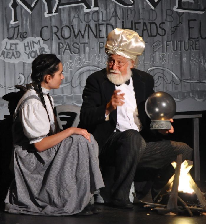 Angela Moline as Dorothy and Gar Roper as Professor Marvel and The Wizard in the production of “The Wizard of Oz,” which continues this weekend at the Freeport Performing Arts Center with performances on Friday and Saturday at 7 p.m. and Sunday at 2 p.m. Tickets are available online at www.fcponline.org, at the Freeport Community Center Thrift Store or at the door. The cost is $10 for adults and $5 for children.