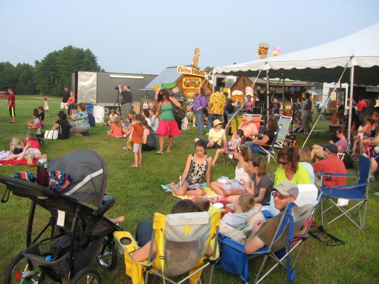 A crowd enjoys a stage show on July 25 at Gorham Founders Festival.