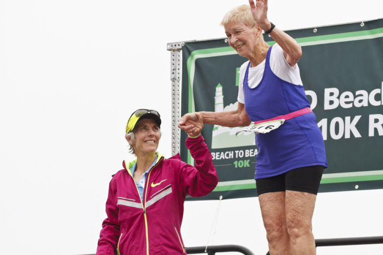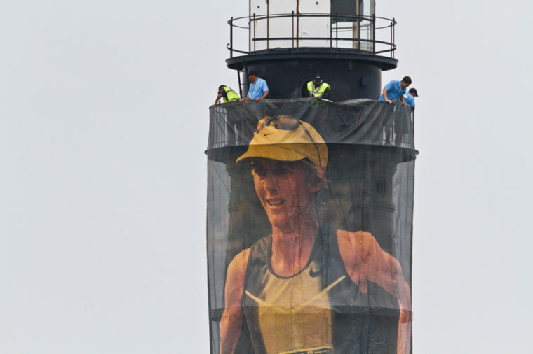With the 30th anniversary of Joan Benoit Samuelson’s Olympic victory approaching, this banner of her decorated Portland Head Light during Sunday’s Beach to Beacon 10K.Sterling, Massachusetts, resident Gary Brendal, 55, took second in the men’s wheelchair division.Yarmouth native Ben True, who now resides and trains in Hanover, N.H., took third among all men, in a time of 27:51.First and fourth place winners Bedan Karoki Muchiri (left) and Patrick Makau, both of Kenya, collapse on the grass and clasp hands after crossing the finish line.Brunswick’s Will Geoghegan, 22, finished first among Maine men, in a guntime of 29:54.England’s Gemma Steel (105) breaks the tape, taking first among all women just a half-step ahead of American Shalene Flanagan.Yarmouth’s Ben Decker, 18, finished the Beach to Beacon in 32:55, 41st amongst all runners.Freeport’s Andy Spaulding, 43, finished 53rd among all runners, in a time of 33:31.Scarborough’s Erica Jesseman, last year’s Maine women’s victor, took second in that category this year, finishing in 34:18.Cape Elizabeth’s Liam Simpson finished in 34:28, 74th among all runners.Anders Samuelson of Freeport, 24, finished 85th among all runners, in 35:13.Lester Li of Westbrook crossed the finished line 98th among all runners, in a time of 35:51.Ben Breton of Windham, just 15, crossed the finish line in 36:58.Emily Atwood of Cape Elizabeth, 22, finished in 40:15.Kyle Rhoads, 44, of Windham, finished in 40:49. Rhoads serves as the principal of Windham Primary School.South Portland’s Heather Johnson, 40, finished in a guntime of 41:15.Windham’s Andrew Davis, 19, finished Saturday’s B2B in 41:31.Freeport’s Larry Wold, 55, finished Saturday’s race in 42:44.The TD Beach to Beacon 10K attracted hordes of runners – over 6,000.Runners and volunteers mill about the finish area of Saturday’s Beach to Beacon.A member of team Rippleffect, this year’s TD B2B charity beneficiary, carries the American flag during the awards ceremony.89-year-old Dottie Gray – the race’s oldest finisher (but not its last!) – finished in 2:02:09.Kenya’s Bedan Karoki Muchiri, 23, speaks to the crowd upon receiving his laurels. Muchiri finished first among all runners, in a guntime of 27:37 – or a pace of 4:27 per mile.Cape Elizabeth’s Christina Kouros, 19, finished the women’s wheelchair race in 39:33, a personal best.
