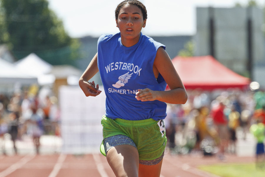 Westbrook’s Sophia Williams during the 15-and-under girls 100-meter dash.