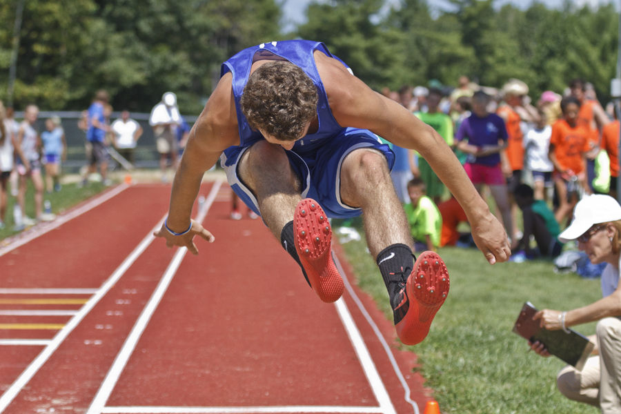 Falmouth’s Max Alley, 13, won his division’s long jump.