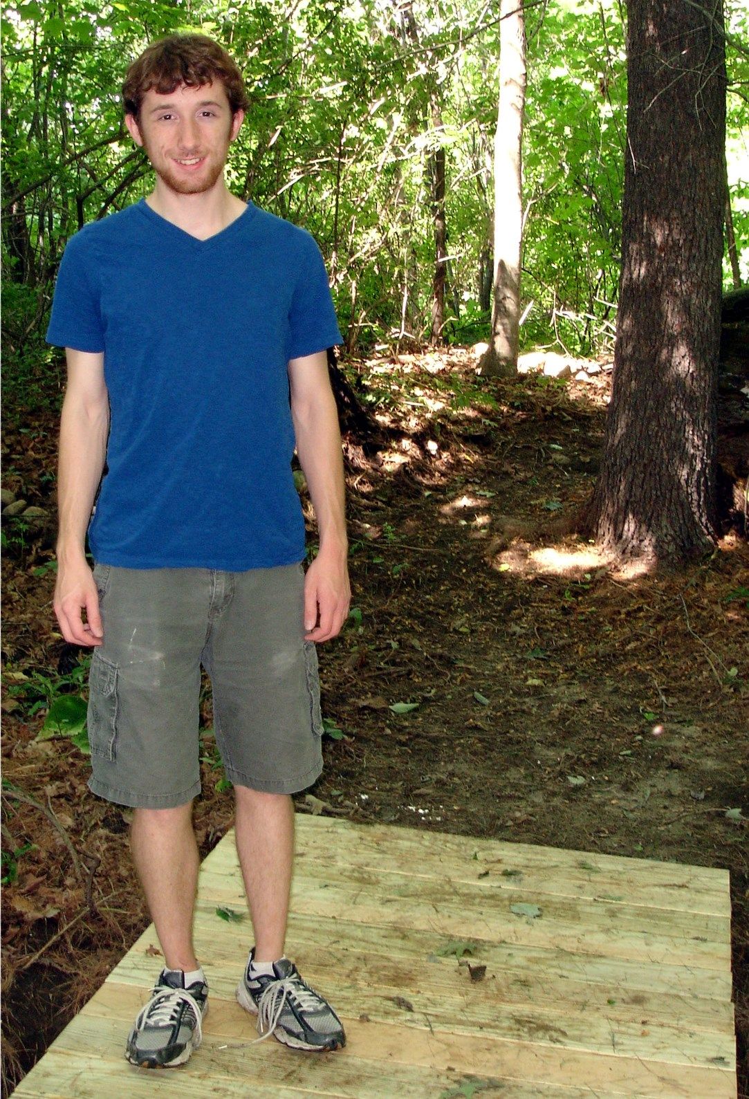 Bryce Neal, of Boy Scout Troop 86 in Gray, stands on a bridge he built with the help of his father Scott Neal, at Sabbathday Lake Shaker Village in New Gloucester. Bryce led a team of his fellow troop members in clearing a new trail, as well. The bypass he created was his Eagle Scout project.