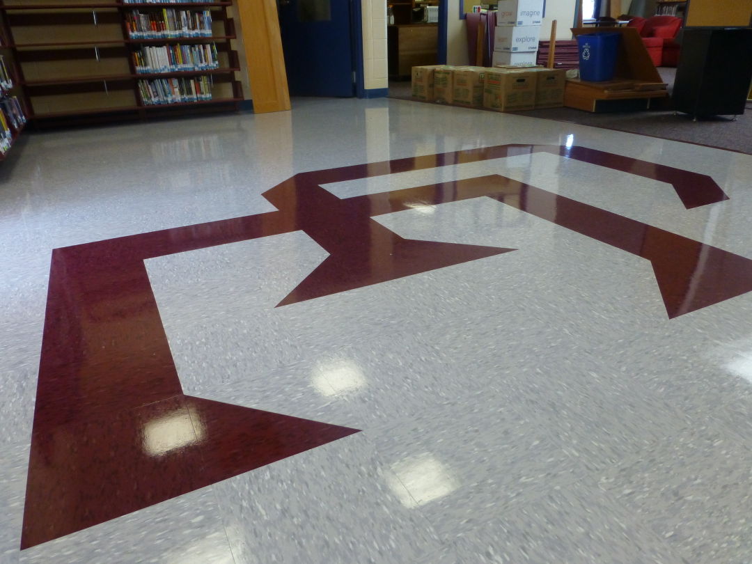 New tile flooring, which includes an emblem representing Cape Elizabeth, was installed as part of the library and learning commons renovations at the Cape Elizabeth Middle School.