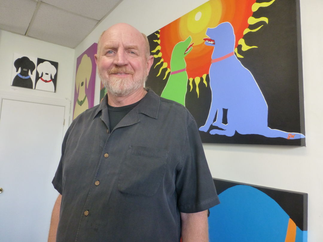 SOUTH PORTLAND – Jim Williams, a late-blooming Cape Elizabeth artist who paints bold and colorful images of black Labrador retrievers, has opened a new studio and gallery in the Knightville neighborhood of South Portland.