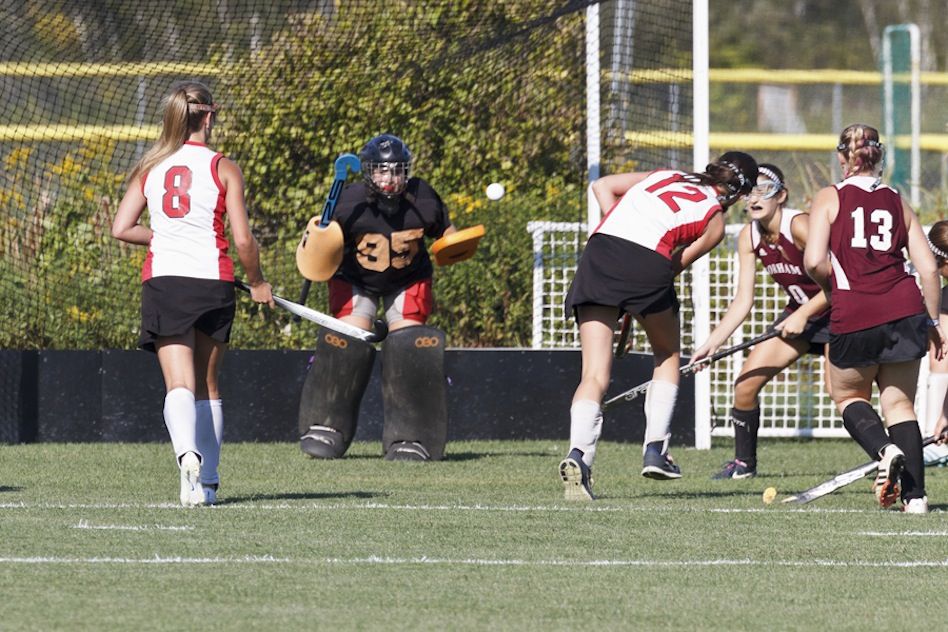 The Rams scored again – this the game-clincher – another nine minutes on. Esty dumped the ball inside the South Portland circle; it bounced back out, but landed on the ready stick of Leavitt, who redirected it past Chitham for 2-0.