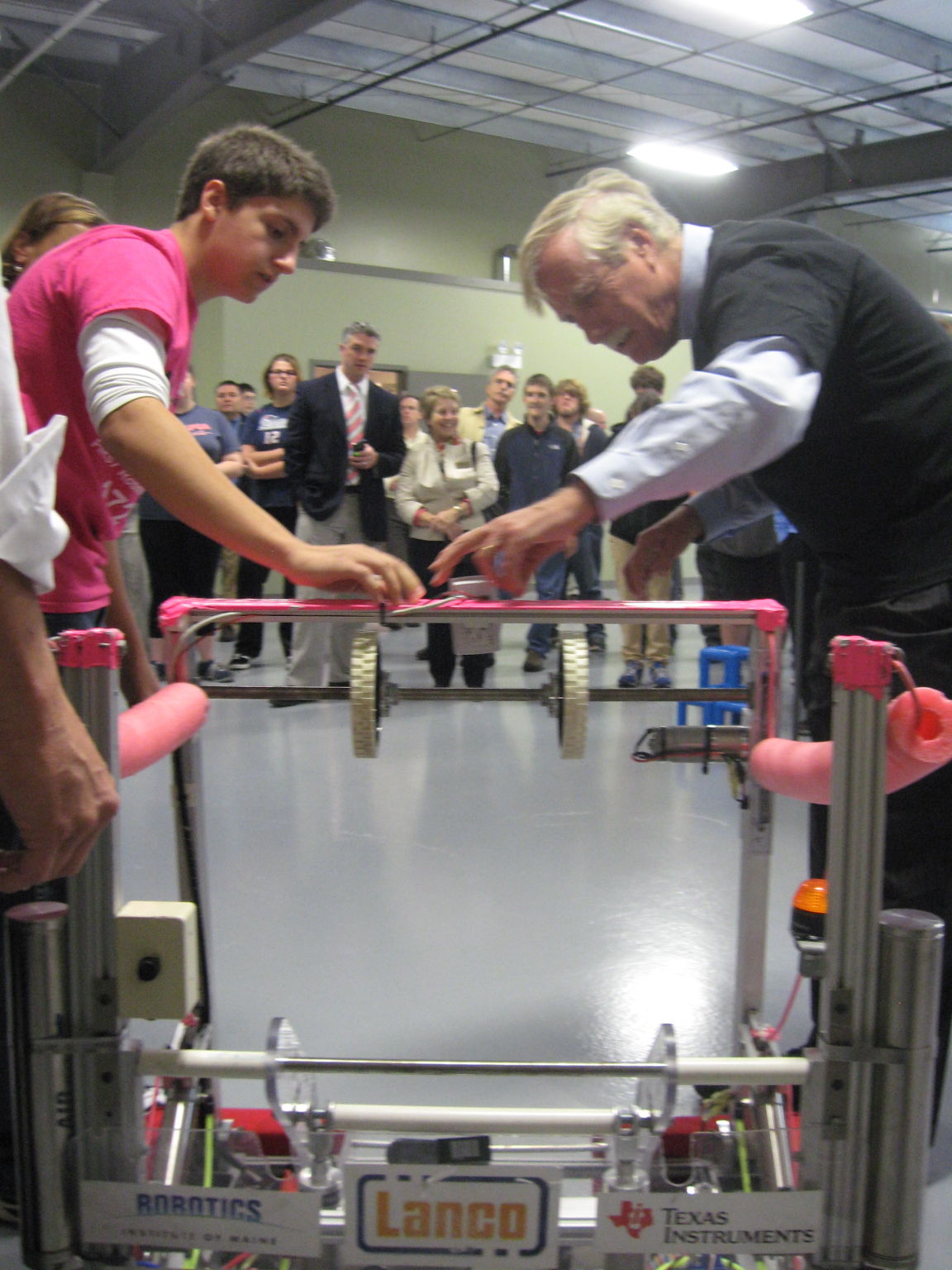 U.S. Sen. Angus King lent a hand to the Falmouth-Gorham robotics team during observance of National Manufacturing Day on Oct. 3 at ODAT Machine in the Gorham Industrial Park.