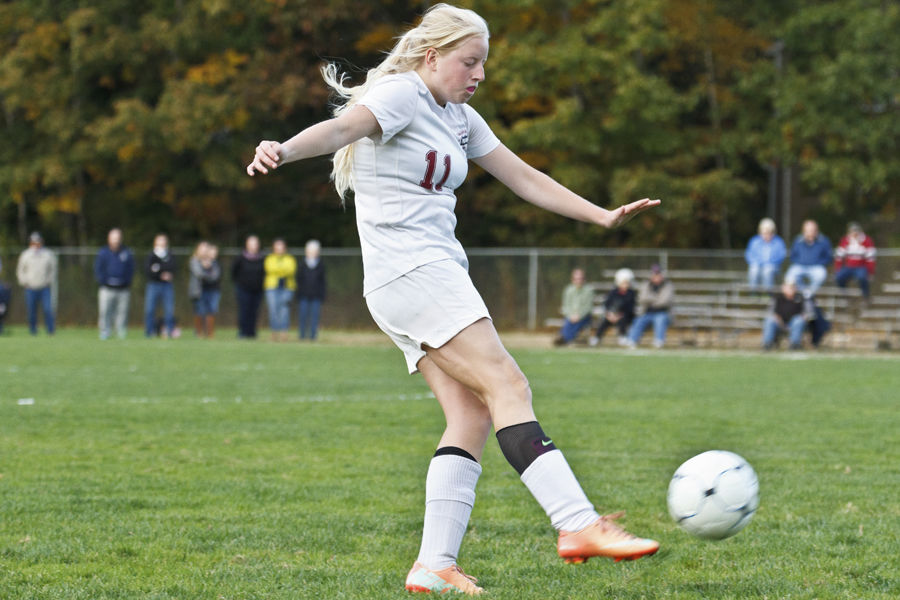 Freeport defender Kaitlin Johnson boots the ball ahead in her team’s 2-0 win over visiting Traip on Friday.