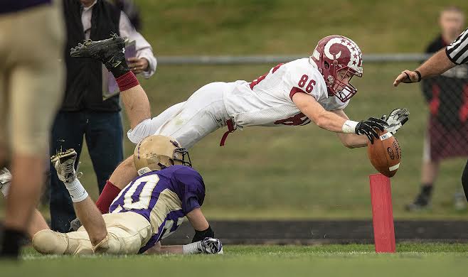 Cheverus went back to the air, as Holman broke into the right flat and although he was blanketed by Johnson, Dunn’s throw was high and allowed the 6-foot-6 standout to go up and snare it for the touchdown.