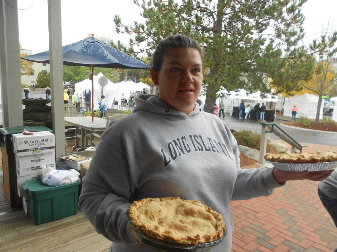 Anna Darby brings homemade apple pies, fresh out of the oven, to the L.L. Bean Home Center for the Chowdah Challenge benefit for Freeport Community Services, held during the Freeport Fall Festival on Oct. 4. Freeport Community Services made a huge contribution to Darby and her family after they were burned out of their home last January, she said.