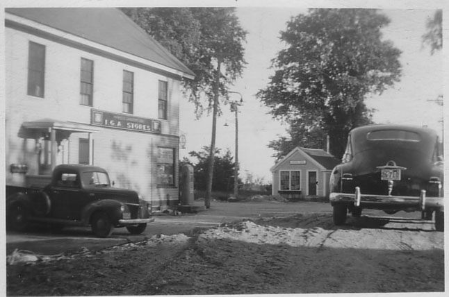 Once an IGA store, Hawkes Store “ruled” the corner. Across the street, the former library served the area.
