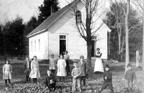 About this time, a school further down the Falmouth Road toward the lake, was closed. It was called the Scotland school. The two districts were combined and children from the Scotland district attended the Ireland school. Records indicate that the new school burned around 1900, and a third school was built.