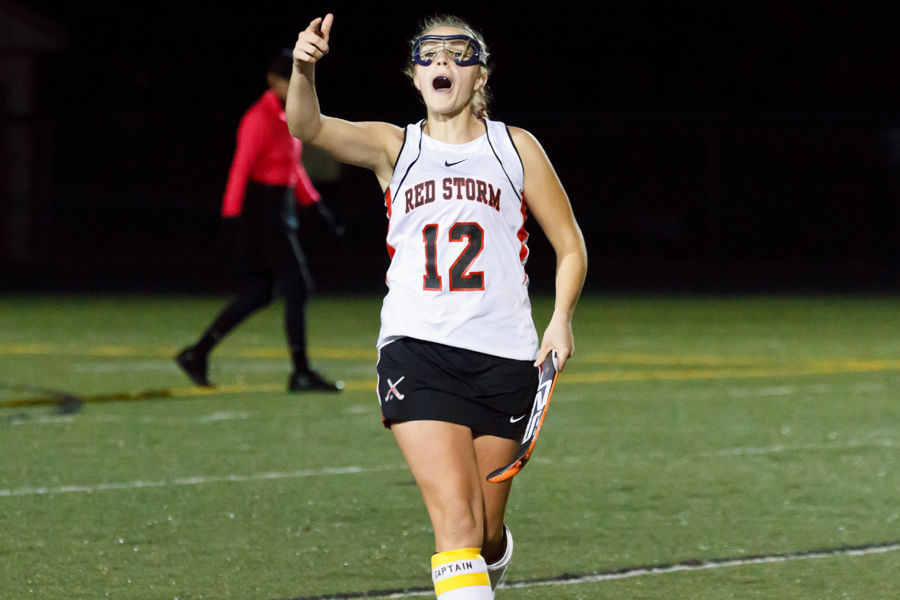 Maddy Dobecki orchestrates the action on-field against Marshwood in the Scarborough field hockey team’s A West Final versus Marshwood.