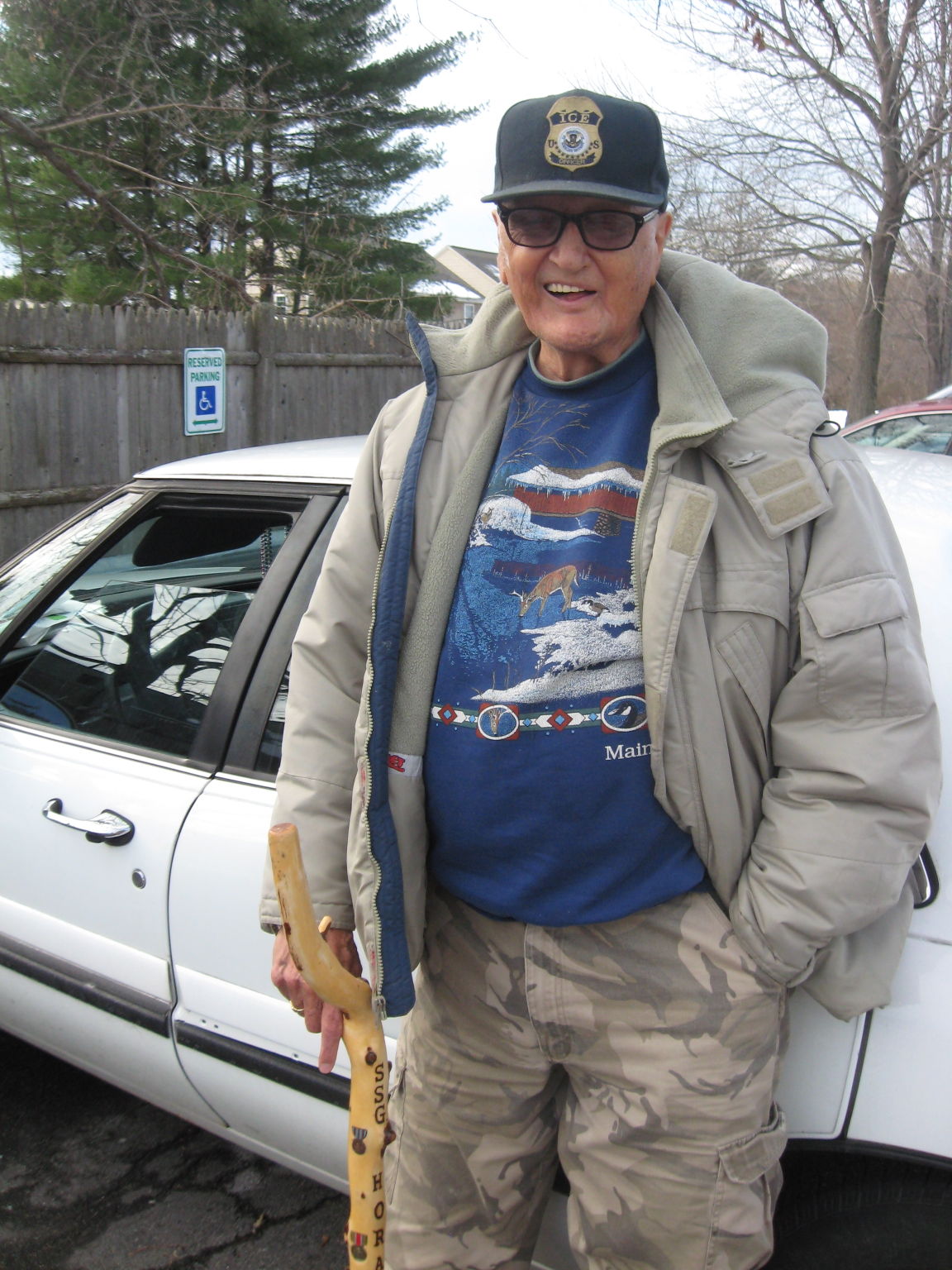 Horace “Bud” Fogg is a 90-year-old World War II veteran from Gorham.  Aided by a gift cane from Windham Police Association, Horace “Bud” Fogg of Gorham, who survived the battle of Hurtgen Forest in Belgium 70 years ago, stays on the go visiting friends in his daily rounds.