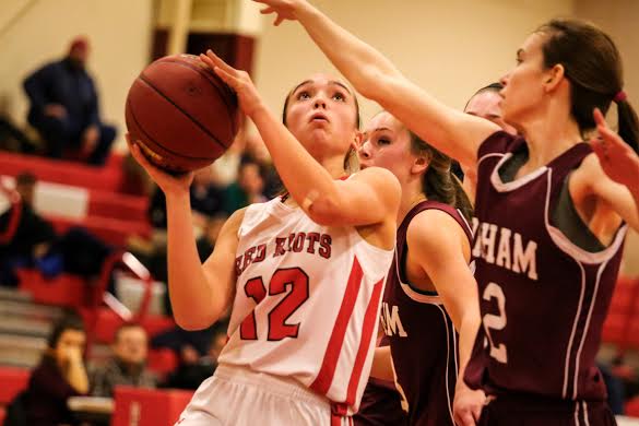 The Red Riots went back on top, 19-17, when Cavallaro set up Graff for a layup on the fastbreak, but Hamilton answered with a pullup jumper. Two free throws from sophomore Lydia Henderson were countered by a layup after a steal by Gorham junior Emily Bragg.