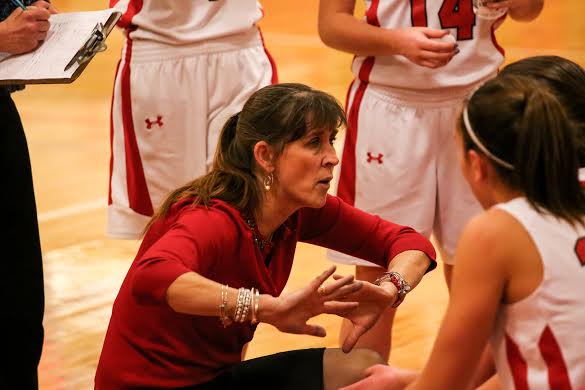 South Portland coach Lynne Hasson implores her players during a timeout late in Wednesday’s contest.