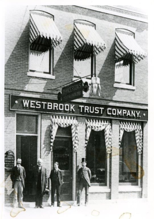 The original Westbrook Trust Co. office at 106 Main St., which started at the intersection of Longfellow and Conant streets. The numbers were later changed with the lower numbers starting on Main Street at the Portland line. Dr Anderson’s Dental Parlor’s was on the second floor. The man second from the left is Leander Valentine, first mayor of the city of Westbrook and first president of Westbrook Trust Co. A new bank building was constructed to the left of this building and Alice St. Pierre operated a millinery shop in the old building until it was demolished to make way for a drive-through window for the new bank building. Bank of America presently occupies the former Westbrook Trust building on Main Street. To see more historical photos and artifacts, visit the Westbrook Historical Society at the Fred C. Wescott Building, 426 Bridge St. It is open Tuesdays and Saturdays, 9 a.m.-noon, and the first Wednesday of each month at 1:30 p.m., September-June. Inquiries can be emailed to westhistorical@myfairpoint.net. The website is www.westbrookhistoricalsociety.org.Photo and research courtesy of Mike Sanphy