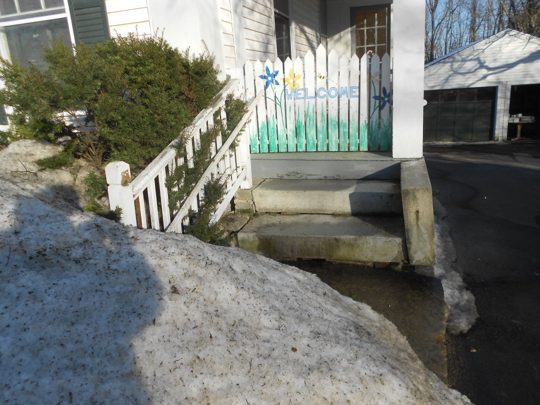 A spring-like welcome sign has emerged from the snow at this home on 152 Main St. in Freeport. People were out everywhere on March 11, strolling with baby carriages, walking their dogs and just enjoying temperatures in the 50s. Staff photo by Larry Grard