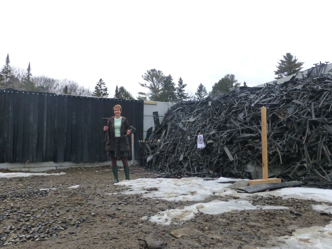 Tammy Walter, Spurwink Rod & Gun Club president, aims a Taurus revolver at one of the new rubber-padded targets at the upgraded shooting range. After a year of making safety improvements, the club has filed its first license renewal application with the town of Cape Elizabeth.Staff photo by Kayla J. CollinsTammy Walter, president of the Spurwink Rod & Gun Club in Cape Elizabeth, holds up rubber pieces from one of the new rubber backstop berms intended to enhance safety. The berms are part of several safety improvements the town required of the club.Staff photo by Kayla J. Collins
