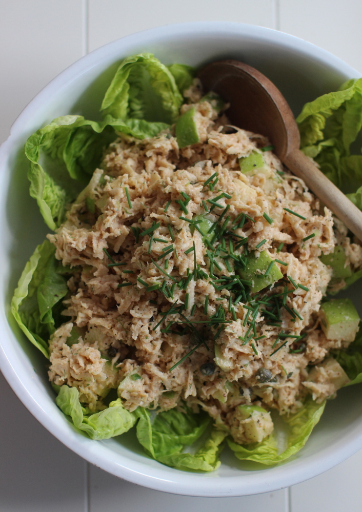 Add the capers, apple, dill and scallion, then toss well. Serve.