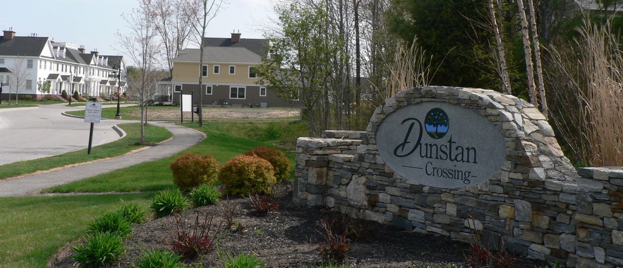 The new entrance to Dunstan Village, off Route 1, would look similar to this landscaped entrance to the Dunstan Crossing housing development off Broadturn Road.Staff photo by Kate Irish Collins