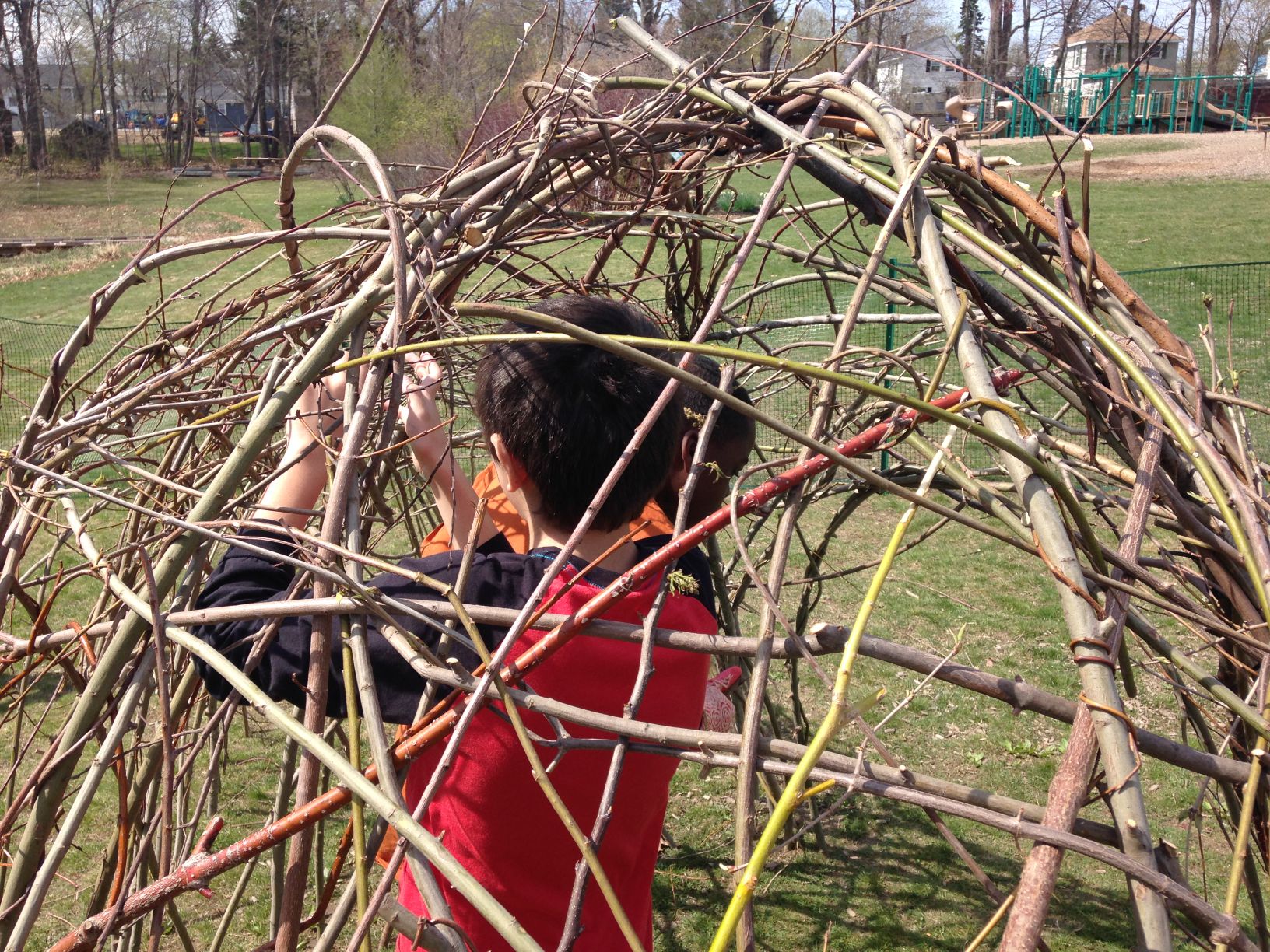 Fifth-grade students at Skillin Elementary School in South Portland are spending the month of May creating an outdoor art installation using woven willow branches. Courtesy photo
