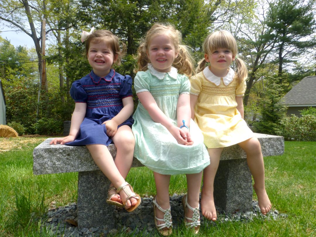 Granddaughters of Kathy Blake, a descendant of the Hannaford family in Cape Elizabeth, are, from left, Charlotte Wainwright Blake, Lucy Marion Blake and Alyson Elizabeth Blackburn. The girls will be among those representing the Hannaford family in the Cape Elizabeth Memorial Day parade on May 25.Staff photo by Kayla J. Collins