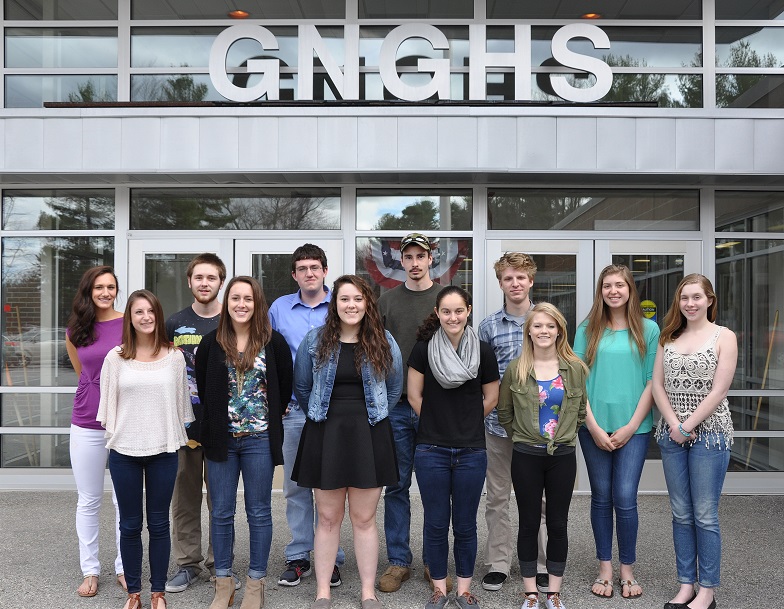 GNG top 10 percent Front row, left to right: Giovanna Beaulieu, Ashley Moreau, salutatorian; Zoe Adams, Sara Carder and Emily Hotham.