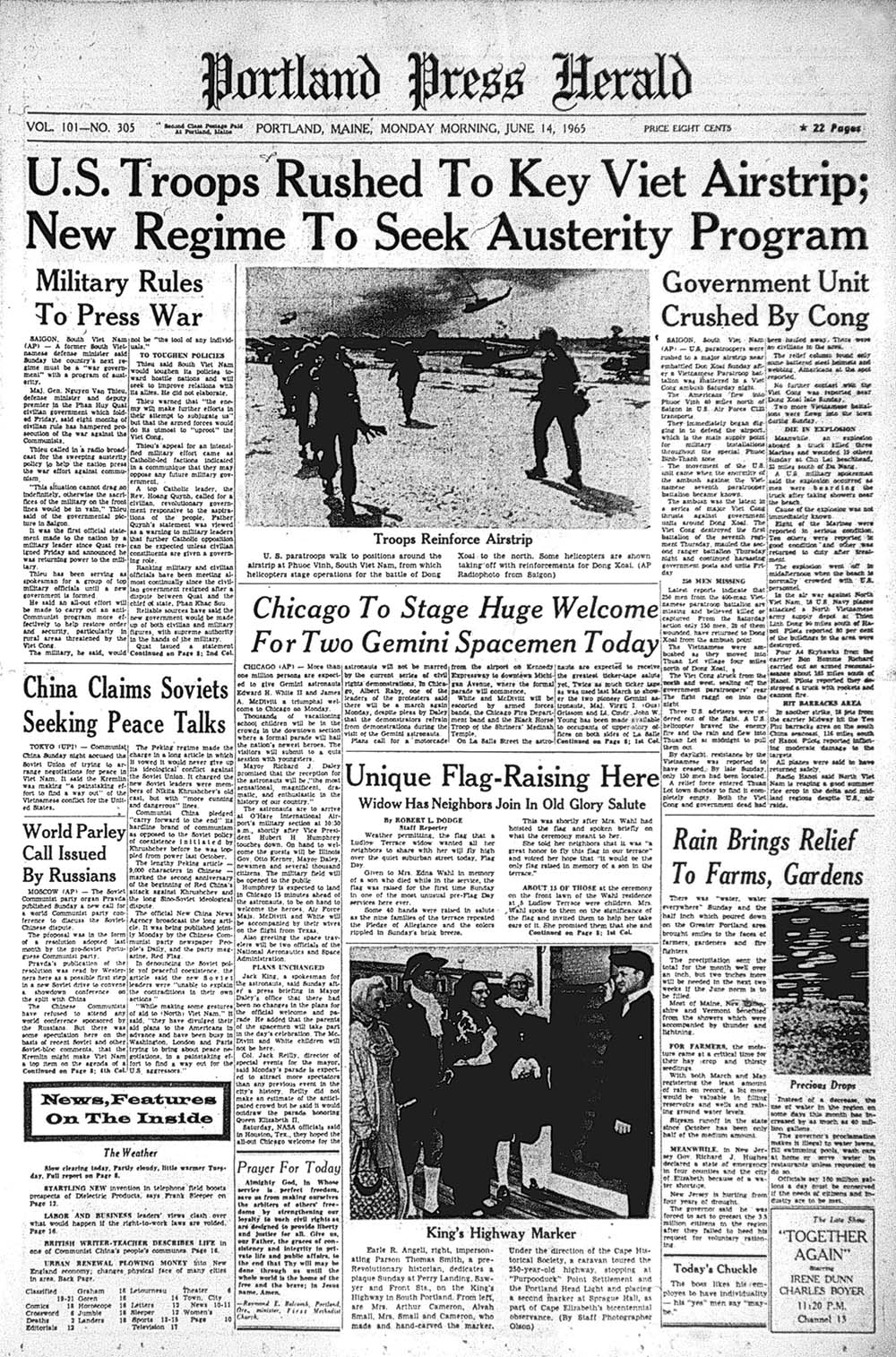 View the historic front page from the Portland Press Herald: Cape Elizabeth bicentennial observance; Government unit crushed by Cong